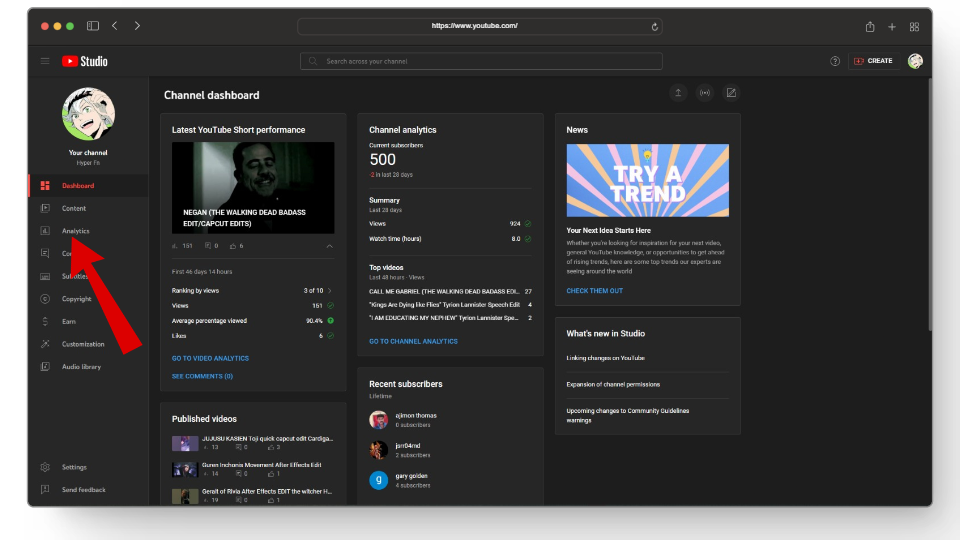 - Open up the official YouTube Studio website and you’ll be directed to the Channel Dashboard.