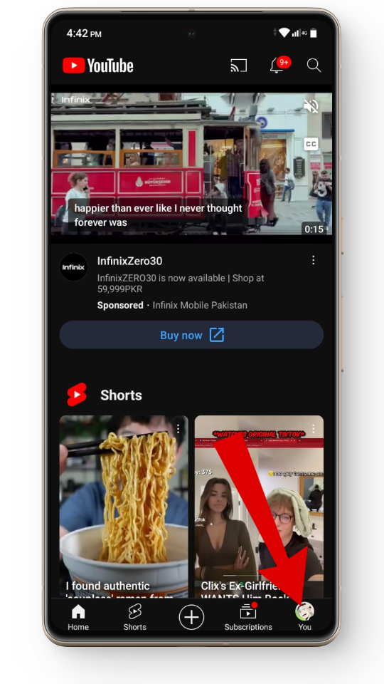 - Open up the YouTube app on your phone and tap on your profile icon located at the bottom.