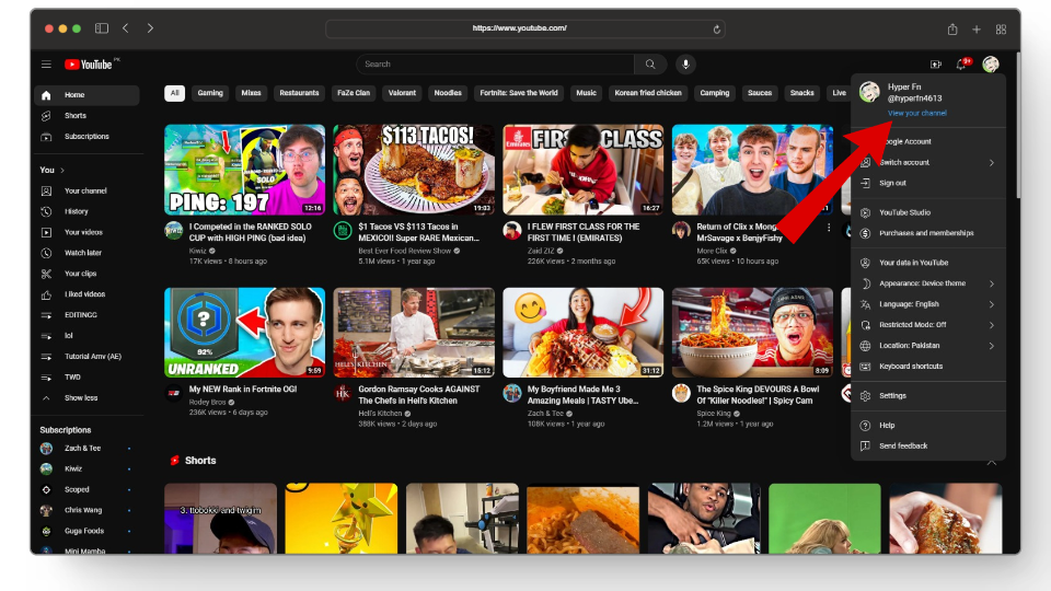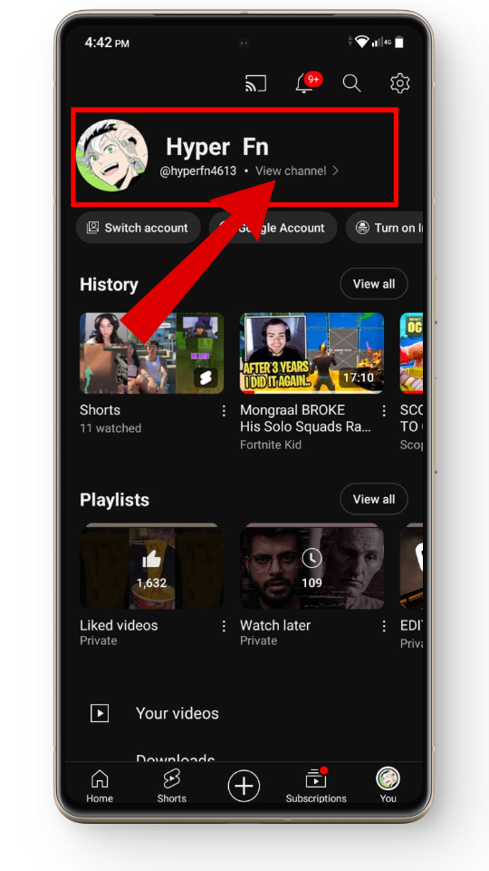 Click on your profile icon - From here, click on the highlighted “View your channel” option.