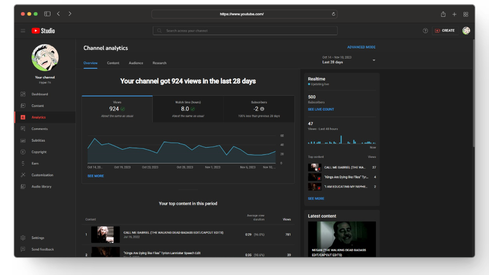 YouTube Creator Studio acts like the backend of your channel and has almost everything you’ll need to assess your channel’s performance. From recent subscribers to real-time updates, YouTube Studio is where you’ll be able to check almost every metric about your channel.