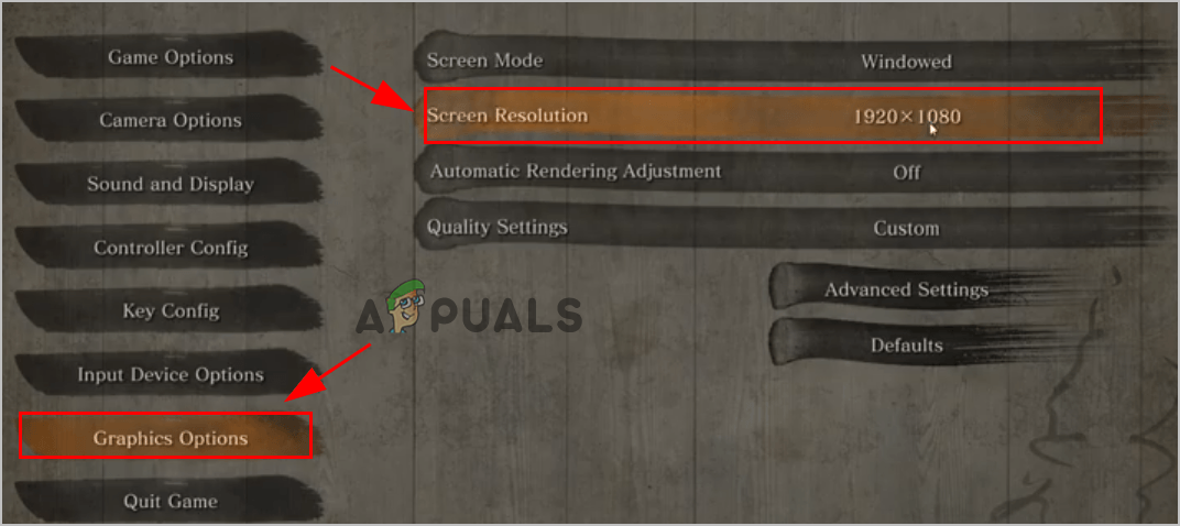 - Now, navigate to the Graphics Options and then go to the Screen Resolution option, and select the resolution that your graphics card uses.