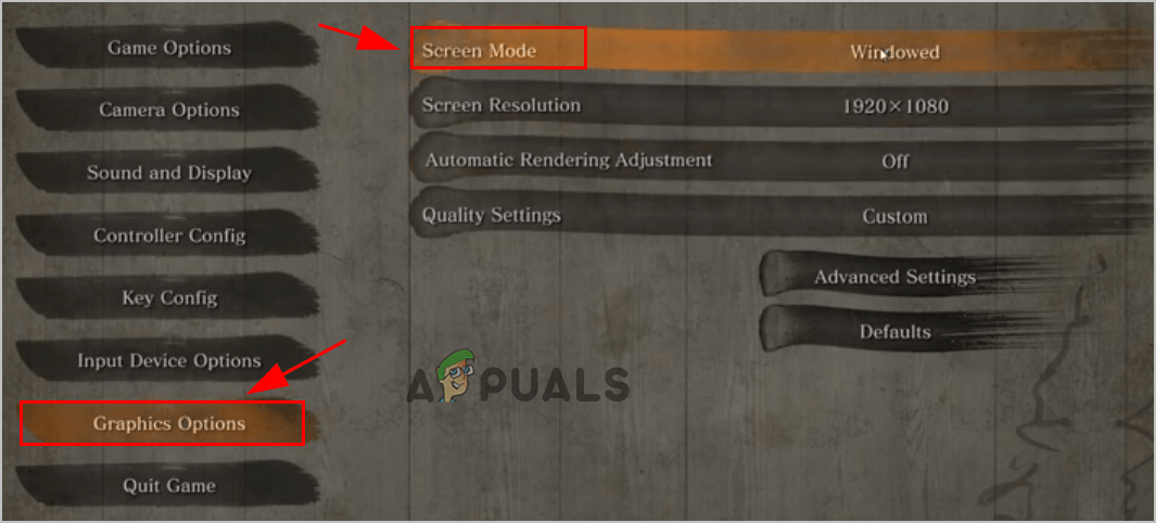 - Now, open the Graphics Options and then click on the Screen Mode.