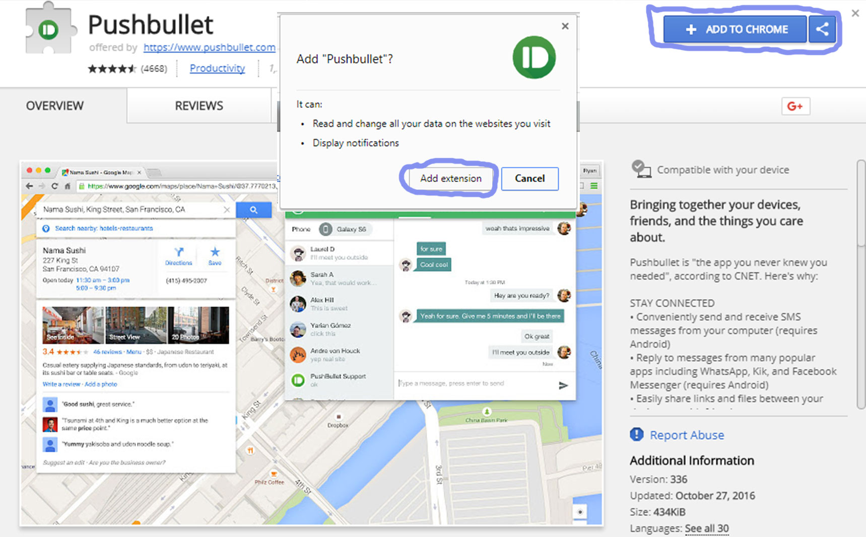 Now you should prepare your desktop to receive Pushbullet notifications. First, open the Pushbulet.com and choose which method you want to use. However, I will use the Pushbullet extension for Google Chrome.