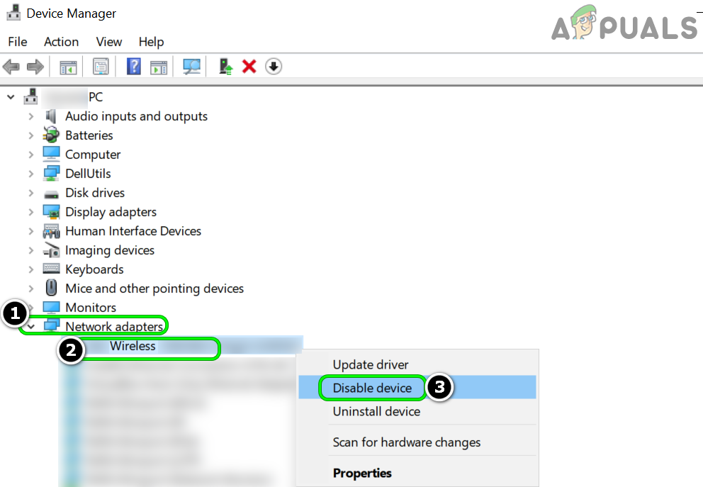 Disable Wi-Fi in the Device Manager - Then select Disable Device and afterward, confirm to disable the Wi-Fi card of your system.