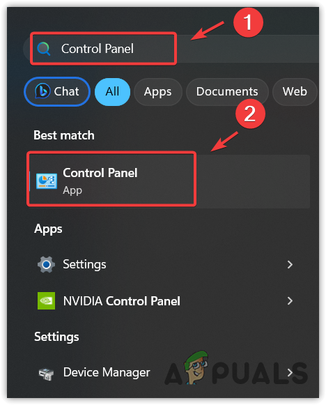 - Click the Start Menu and search for the Control Panel to open it.