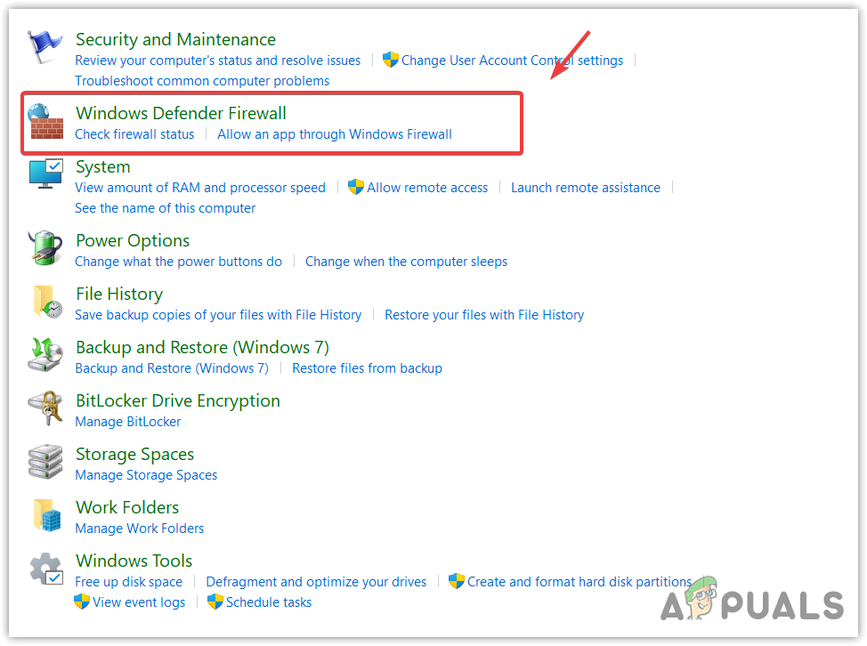 - Then, go to System and Security > Windows Defender Firewall.