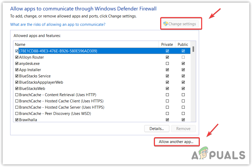 - Now, click “Change Settings,” and then click “Allow another app.