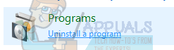 - Once in the control panel, click on the subheading of Uninstall a Program present at the bottom left side of the screen.