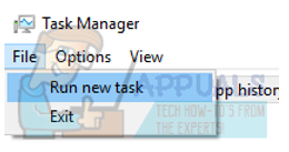 - Now click on File option present at the top left side of the window and select “Run new task” from the list of options available.