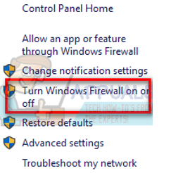 - Now on the left side, click the option which says “Turn Windows Firewall on or off”. Through this, you can turn your firewall off easily.