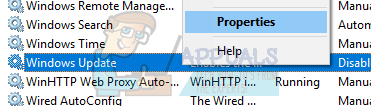 - Once the new window is opened, search the list and find “Windows Update”. Right-click on the service and select Properties.