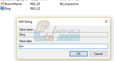 - Now create a new string just like we did above and name that new string as “Ring” and set the Value data as “low”. Press Ok to save changes.