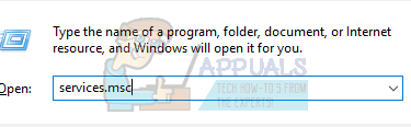 - Press Windows + R to launch the Run application. Type “services.msc” in the dialogue box and press Enter. This will launch the service’s utility which lists all the services running or available on your computer.