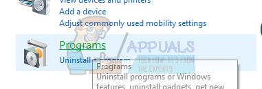 - Once in the control panel, click on the subheading of Programs present at the bottom left side of the screen.