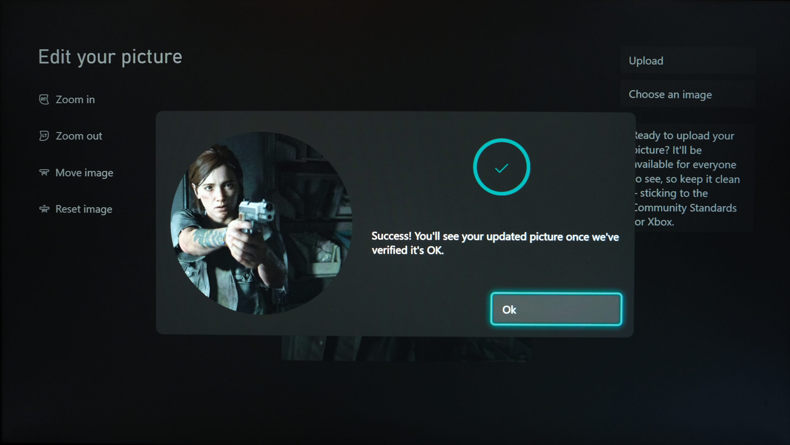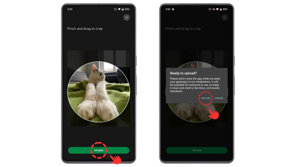 Once you’re satisfied with the crop, just hit the big Upload button. When asked for confirmation, select Upload once again. Xbox will now send your gamerpic to be reviewed by moderators who will determine whether it’s appropriate. This process is quick and usually takes only an hour or two if you’re changing your gamerpic for the first time, otherwise it changes instantly.