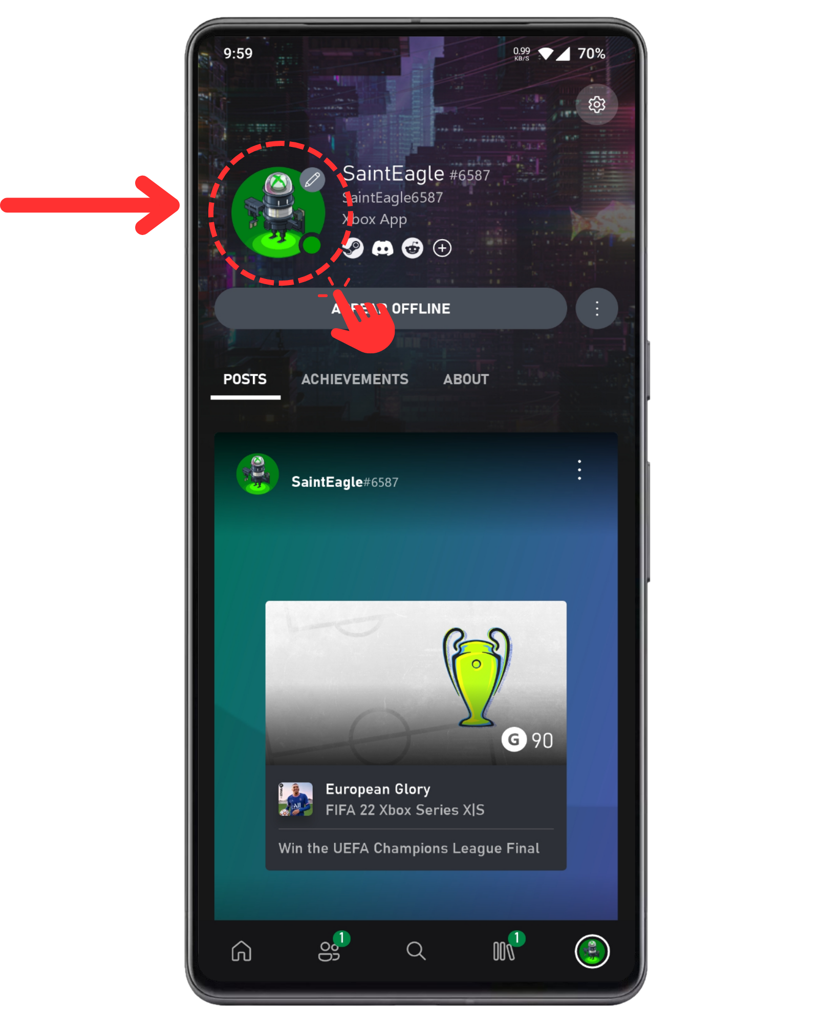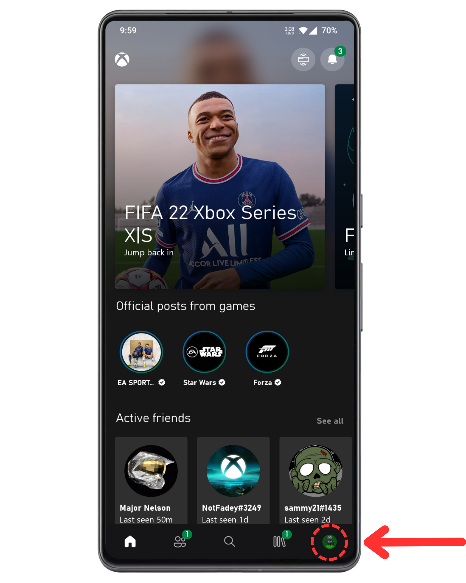 Step 3: Tap on your gamerpic icon