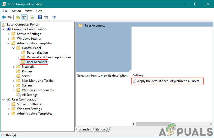 Users can change their account picture in the user settings of the Windows. You can also reset all of the account’s pictures back to default ones or to a company logo. There is a policy in the Local Group Policy Editor that can help the companies put their logo for all user accounts. The same can be done by using the Registry Editor. This will also disable the settings of changing the account picture through the default user account settings.