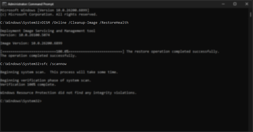 Running SFC (System File Checker) and DISM (Deployment Image Servicing and Management) repairs damaged Windows components that the Settings app depends on. This restores the essential files and dependencies required for the Immersive Control Panel to function properly.