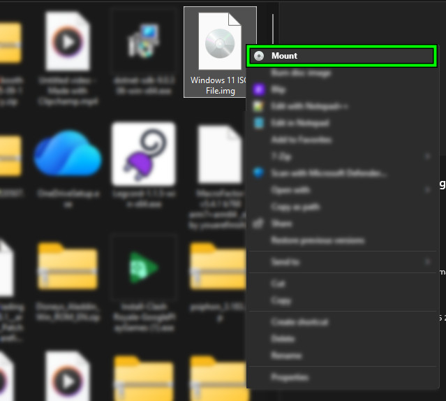 - Right-click the ISO file and select Mount to open it as a virtual drive.