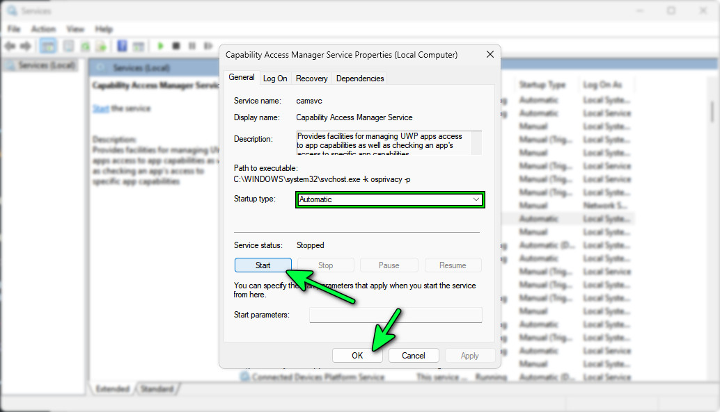 5. Ensure “Capability Access Manager Service” (camsvc) is Enabled