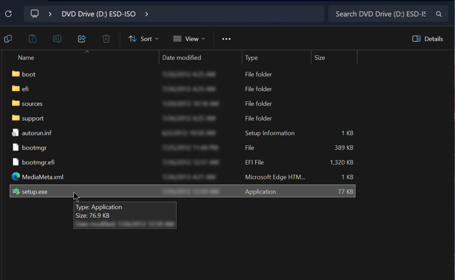- Inside the mounted drive, double-click Setup.exe to launch the installer.