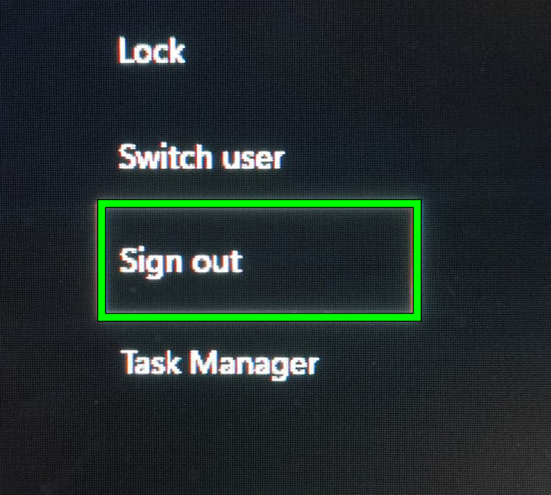 - Press Ctrl + Alt + Del and select Sign out.