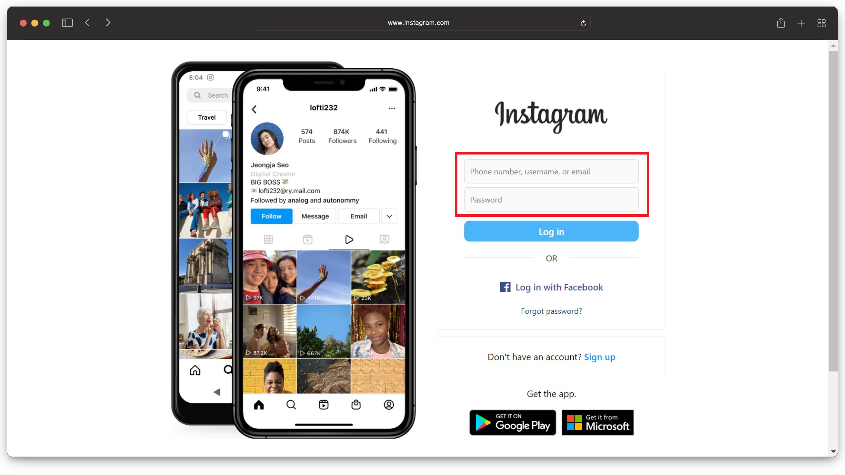 Enter username and password - Enter the direct link to the suspected user’s profile in the address bar. The format for an Instagram profile link is usually “www.instagram.com/username,” where “username” is the actual username of the person.