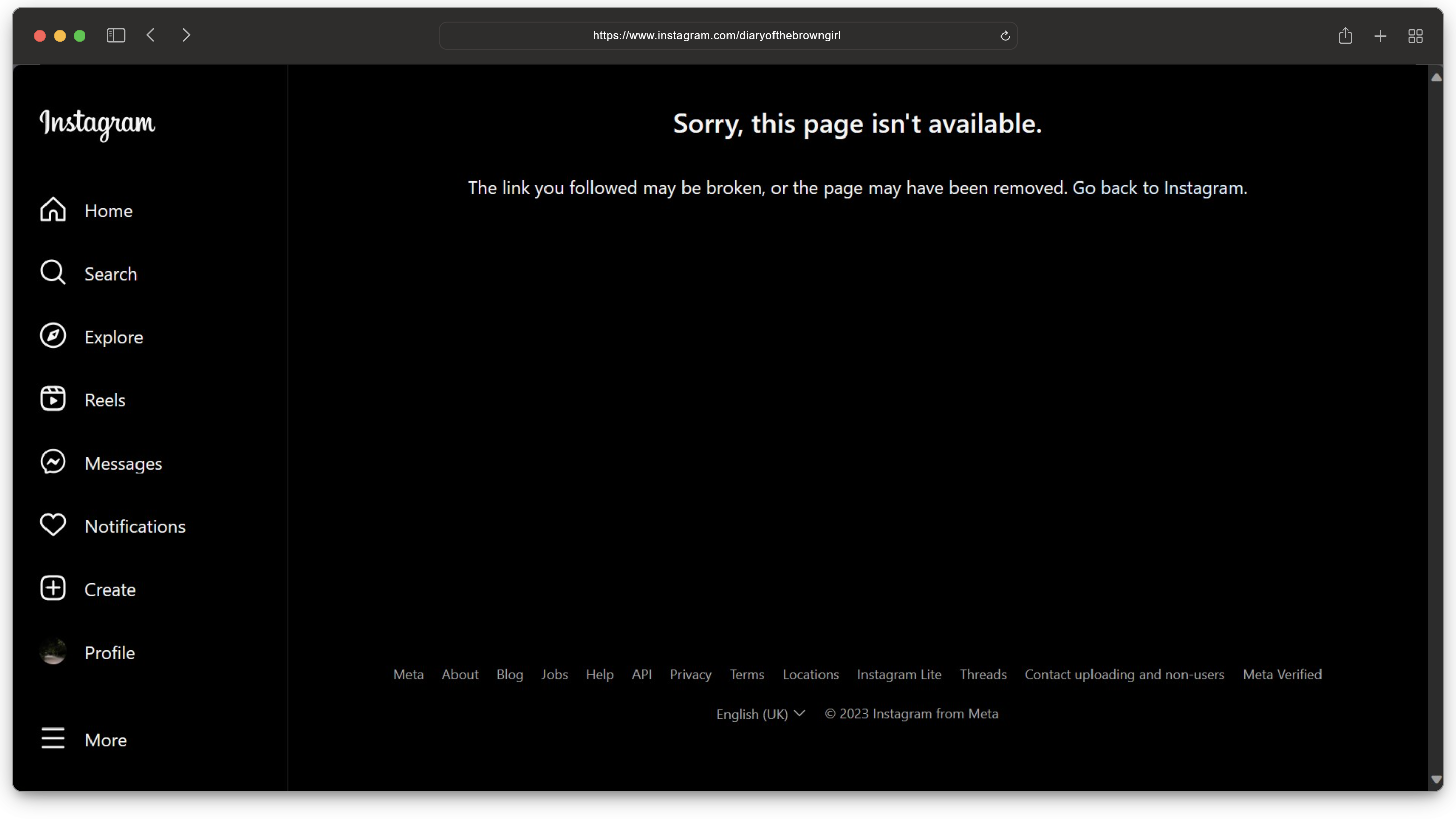 The profile after searching through link - Press Enter to navigate to the specified profile. If the profile does not load or you receive an error, it might suggest that your profile has been blocked.