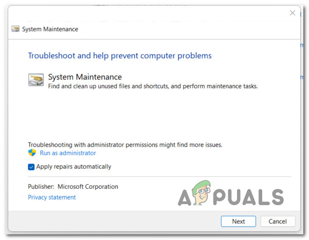 This particular problem is typically caused by a bug that affects the cache folder that your Windows system accumulates. After running the System Maintenance Troubleshooter and implementing the suggested remedy, a number of users experiencing the same type of issue have confirmed that the issue was completely fixed in their circumstances.