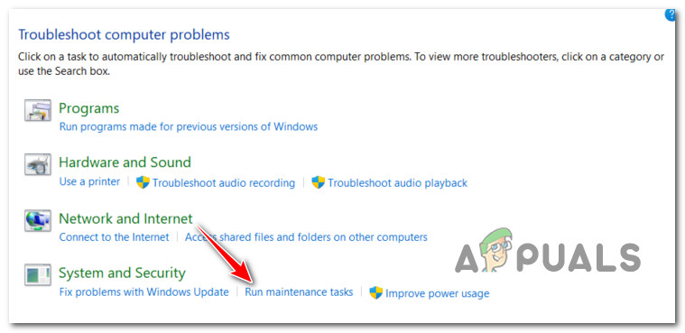 - Cached System Maintenance data – More often than not, this particular issue is brought forward by some kind of bug affecting the cache folder that your WIndows installation accumulates. Several users dealing with the same kind of issue have confirmed that the problem was entirely resolved in their cases after they ran the System Maintenance Troubleshooter and applied the recommended fix.