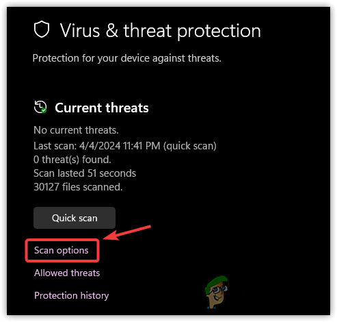 - Navigate to Virus & Threat Protection, then select Scan Options.
