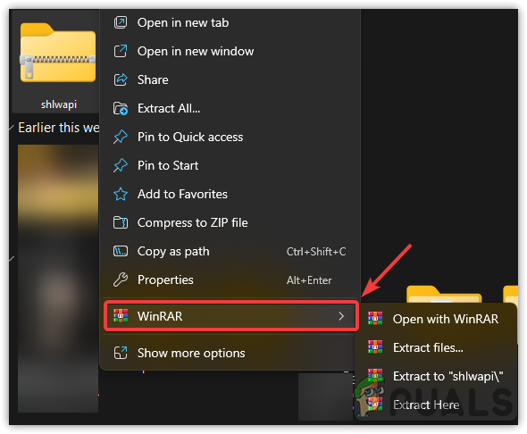 - Extract the zipped DLL folder using WinRar or 7zip by right-clicking on it.
