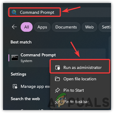 - Right-click on the Command Prompt and select Run as administrator.