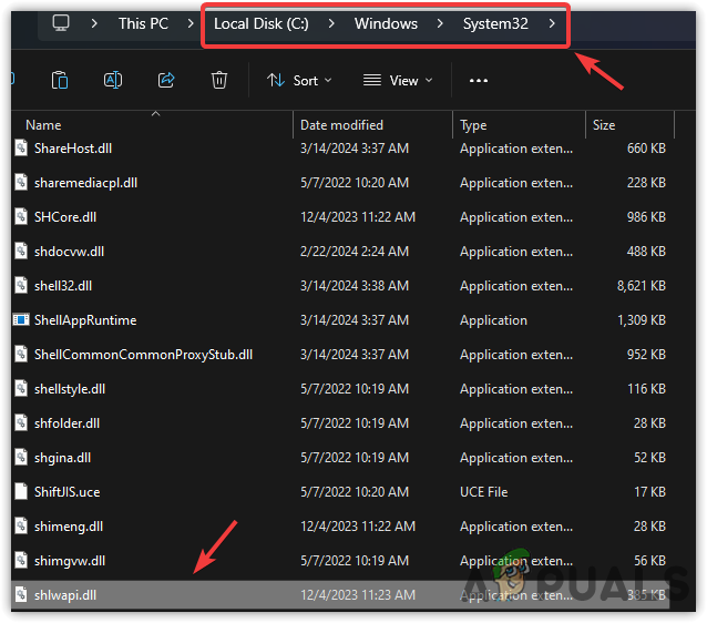 - Copy the Shlwapi.dll file and paste it into the System 32 folder, located at C:\Windows\System32, assuming Windows is installed on the C drive.