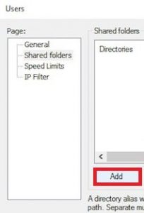 - From there, select Shared Folders and click on the Add button located on the right side of the screen.