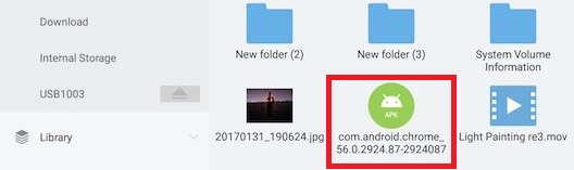 Note: If no message appears, launch ES File Explorer yourself and locate the USB drive you just plugged in.