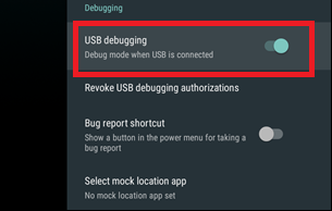 - Scroll all the way down to the Debugging tab and enable USB debugging.