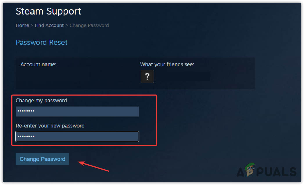 You can also try resetting your Steam password to avoid this error. It may seem strange, but it has actually worked for most of the affected users. Consequently, we recommend that you reset your Steam password using the following instructions.