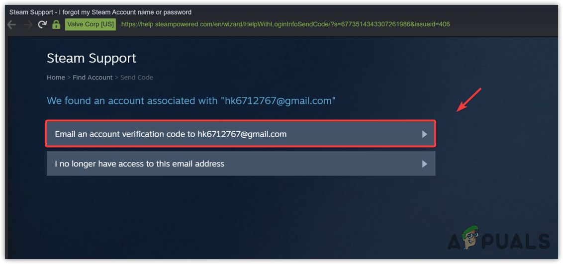- Once your account has been detected by Steam, select Email an account verification code to email.