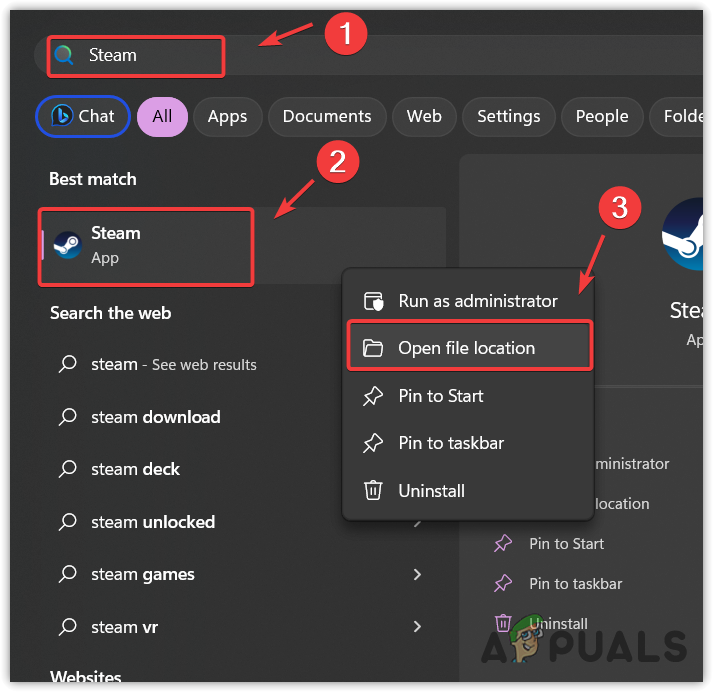 - To do so, right-click on Steam and select ‘Open file location’. You can directly navigate to the Steam app folder if you have not created a shortcut.
