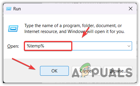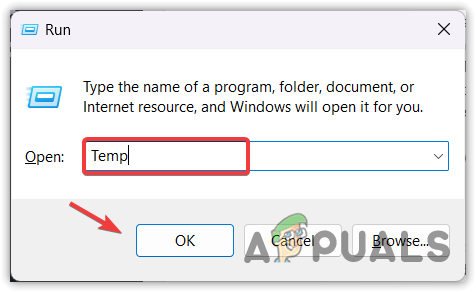 - Then, type Temp in the box and hit Enter. This will open up the Windows temporary files Window.