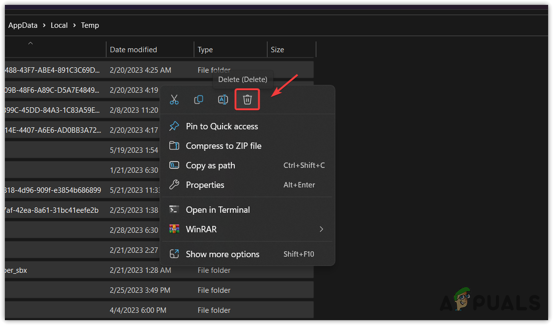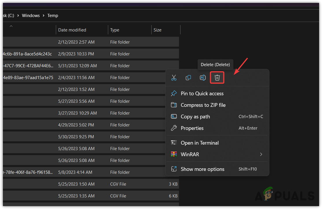 - Again, press Ctrl + A and hit the Delete key on the keyboard to remove the temporary files.