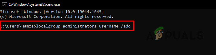 - Now again insert the following command to put the user in the local group of administrators.
