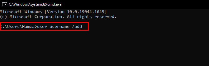 Add user via command prompt - Replace the username with your actual account name according to your preference.