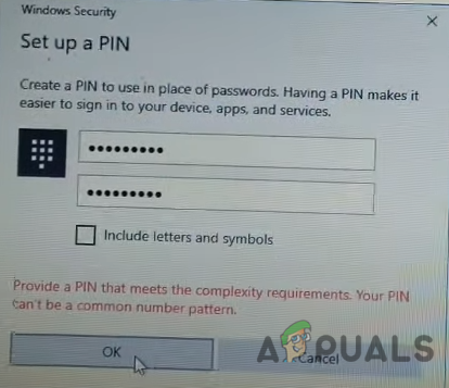 - Once it’s done the Windows security screen will popup and you have to put a new pin and the confirm pin.