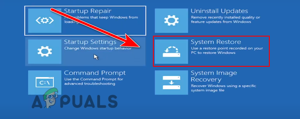Click on the Restart button - Select Troubleshoot>Advance Startup option>System Restore.