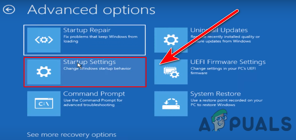 - Select Troubleshoot>Advanced option>Startup Settings.