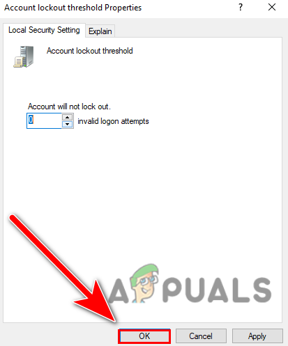 - Double-click on the Account lockout threshold and click on the down arrow button to decrease the threshold value.