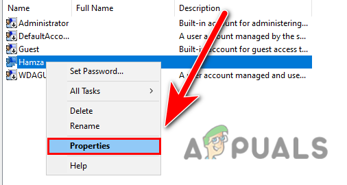 - Right-click on your locked account and select Properties.
