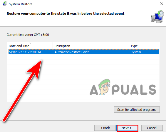 - After that, you will see all your created restore points. Select one of them we recommend you to select the latest one you have created then click Next.